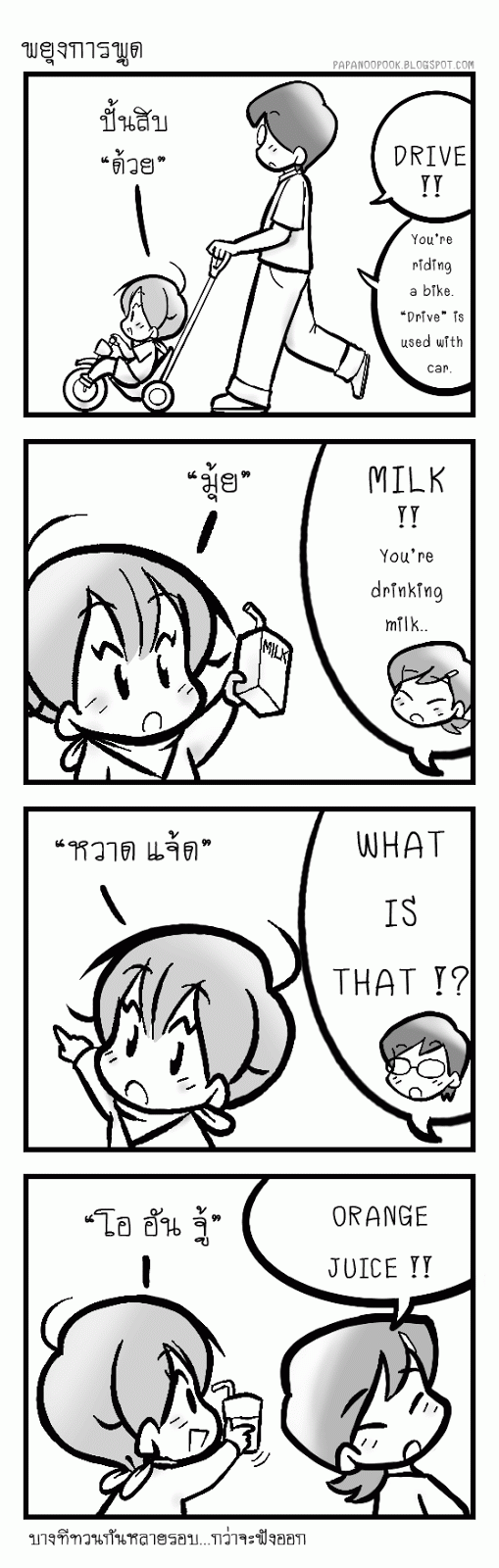 เพิ่งมานึกได้ โอ้วววว เวลามันชั่งรวดเร็วอะไรเช่นนี้ ..... มานึกได้ก็ตอนลูกฟังภาษาไทยรู้เรื่องแล้ว เราพูดให้เค้าทำอะไรเค้าก็เริ่มทำตามคำสั่งแล้ว....